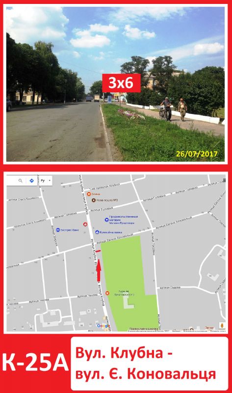 Билборд/Щит по вул. Клубна - вул. Є. Коновальця, Конотоп