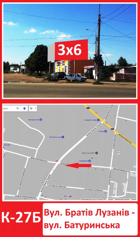 Билборд/Щит по вул. Братів Лузанів - вул. Батуринська, Конотоп
