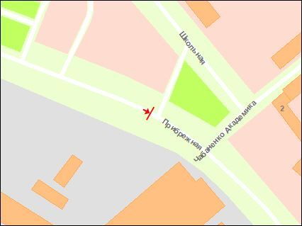 На пересечении с ул. Академика Чабаненко, на разделителе