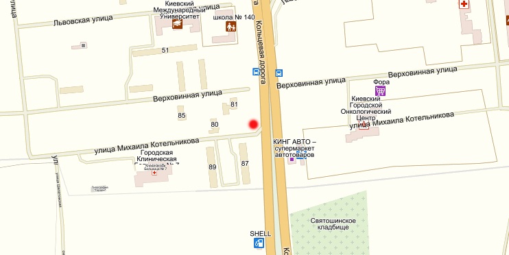 напрямок від пр. Перемоги, 250м до АЗС Шелл