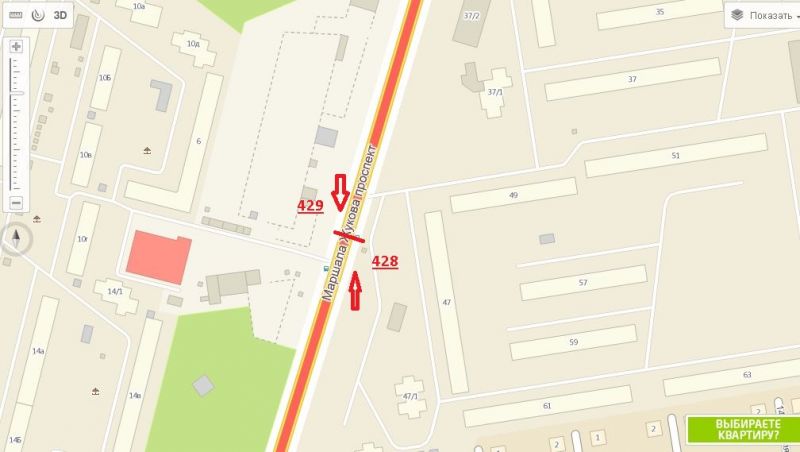 просп. Маршала Жукова, 47 (на роздільній смузі, в місто, призма)