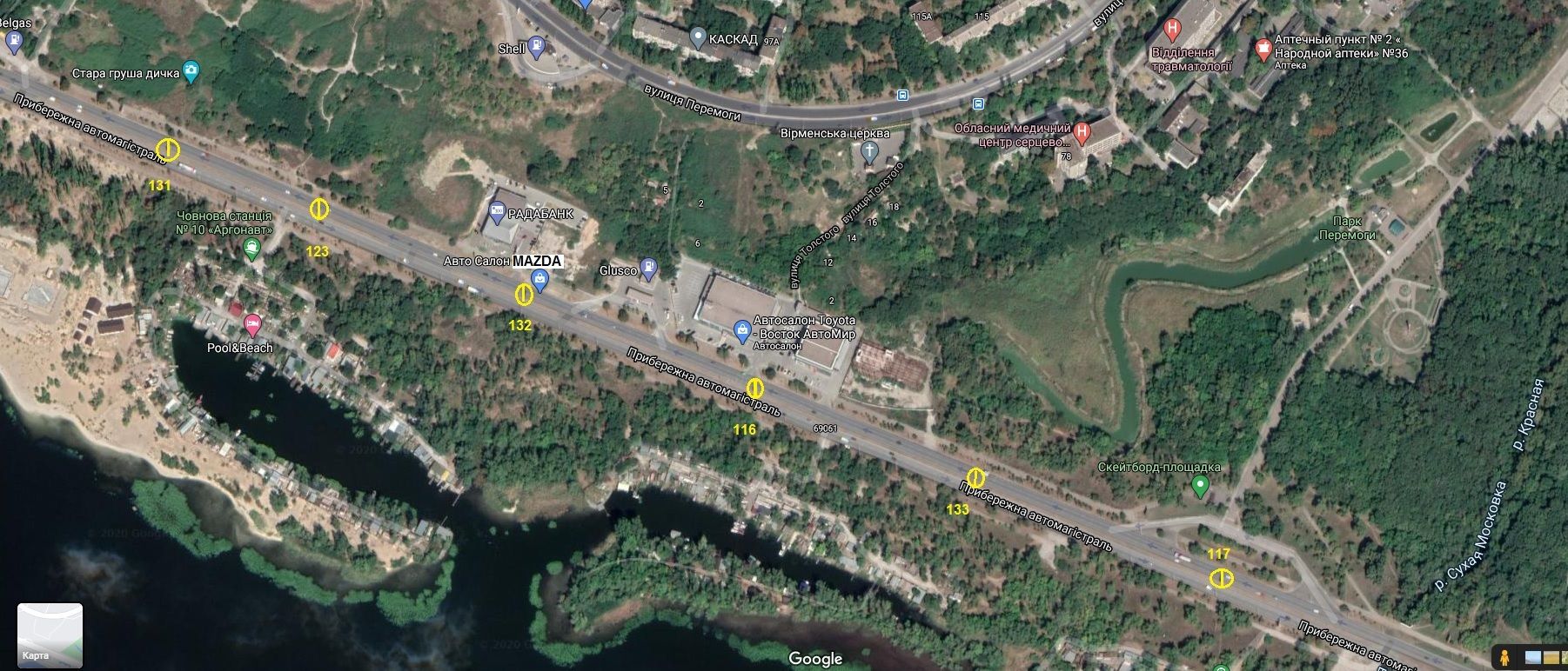 Набережна магістраль - вул.Бульварна, АЗС, рух до вокзалу