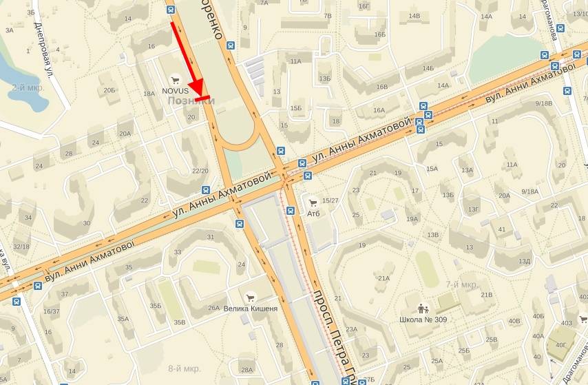 Григоренка пр., 20, магазин Новус, у напрямку Бажана пр.