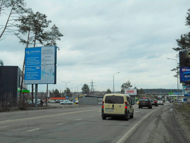 Билборд/Щит по м. Буча, траса М-07 "Київ-Ковель", км 24+100 право, вул. Шевченка, ЖК "Авіатор", напрямок з Бучі, в'їзд в Гостомель, за 100м до повороту на Ірпінь, верх, Буча