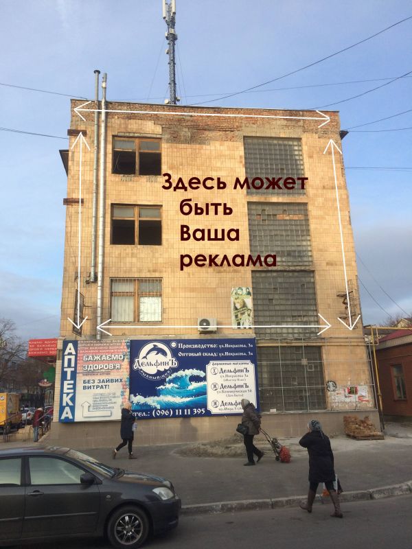 Реклама на фасадах/Брандмауэр по г.Измаил, пересение улиц Покровская и комерческая, ДОМ БЫТА., Измаил