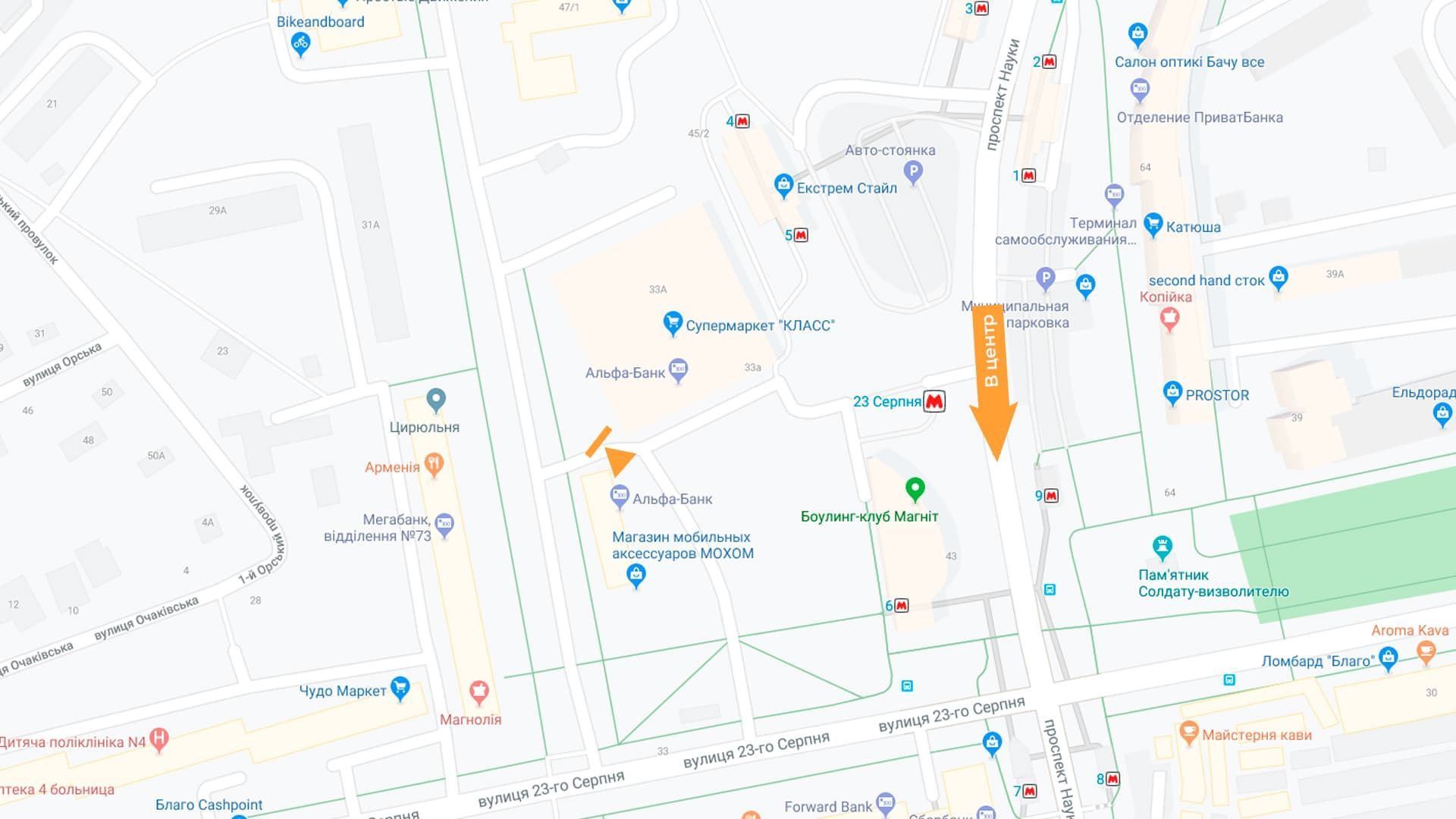 Науки пр-кт - 23 Серпня вул. с / м Клас (правий) (А)