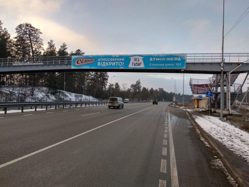 Реклама на мостах по Н 01 Ново Обухівська тр. 34+557 (Гарант) км від КПП. Восьмий від Києва, зупинка Дачна,поворот на Нові Безрадичі, в Київ, Трассы