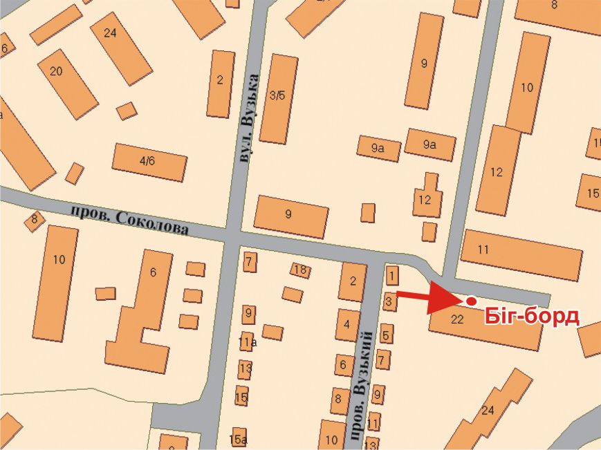 Петра Ротача пров.(Соколова), 22 - Миру просп.(поблизу "Хуторка")