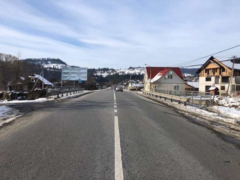 Билборд/Щит по Траса Н-09 Мукачево-Львів, центр селища, готельний комплекс Карпатські зорі, напрямок руху на Івано-Франківськ, Микуличин