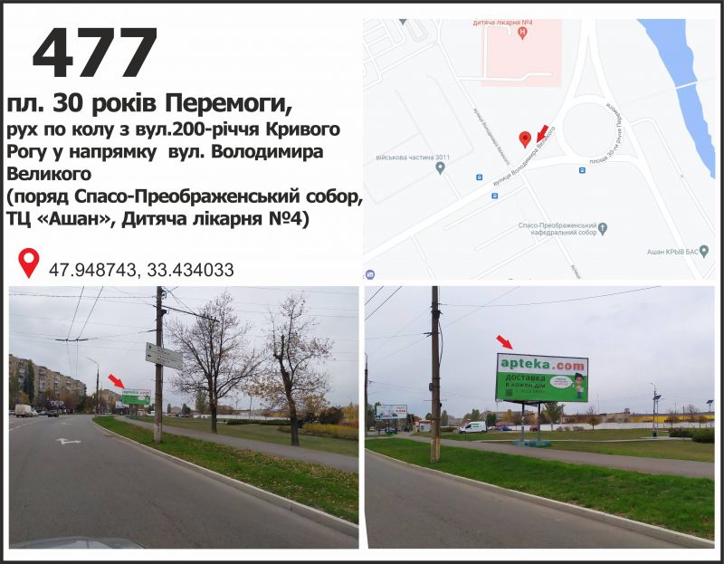 Билборд/Щит по вул. Володимира Великого (Мелешкіна), 94 (зуп. "4 дітяча лікарня"), рух у напрямку пл. Артема, Кривой Рог
