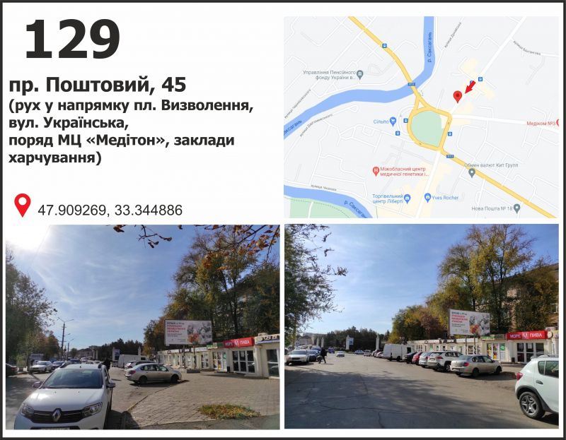 Билборд/Щит по пр. Поштовий (К.Маркса), 45, дв-е к ул. Украинская, Кривой Рог