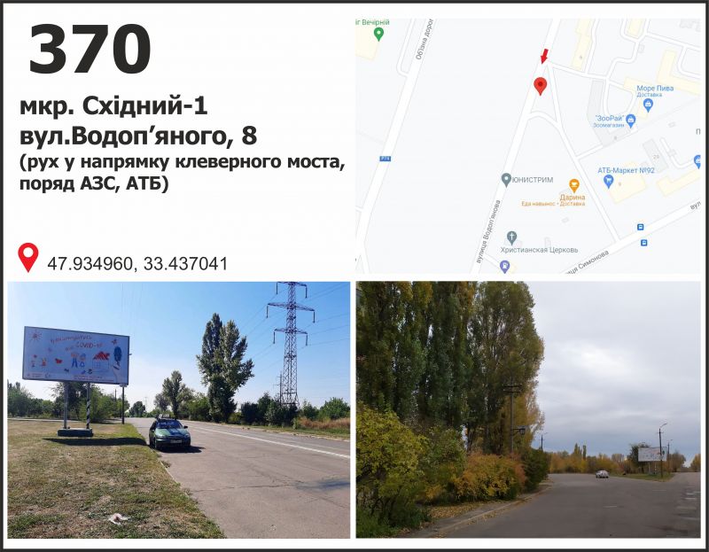 Билборд/Щит по мкр. Восточный - 1, ул. Водопьяного, 8 (АТБ), Кривой Рог