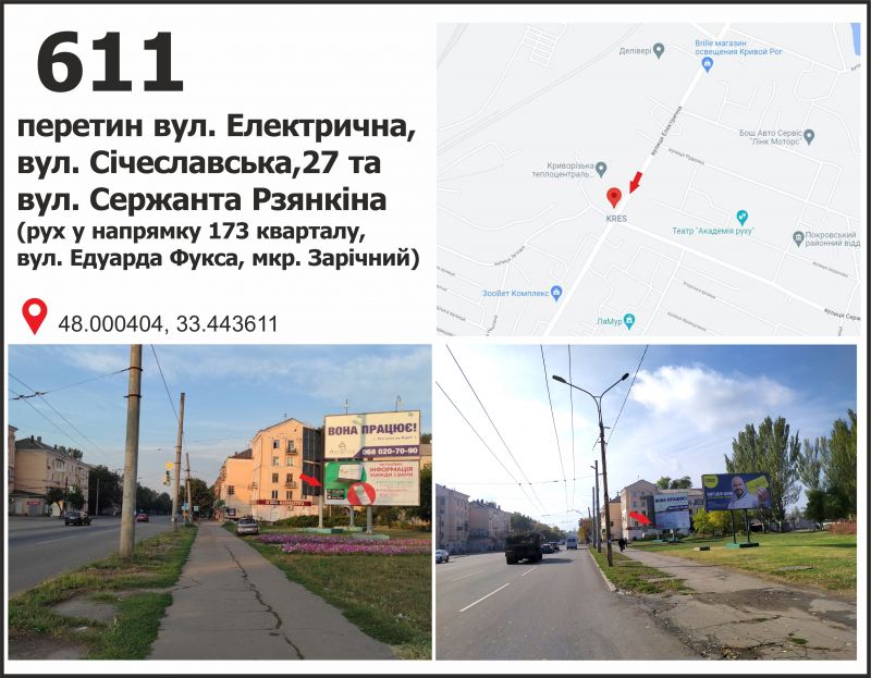 Билборд/Щит по вул. Січеславська (Кремлівська), 27 - вул. Електрична, рух до вул. Е. Фукса (Тухачевського), мкр. Зарічний, Кривой Рог