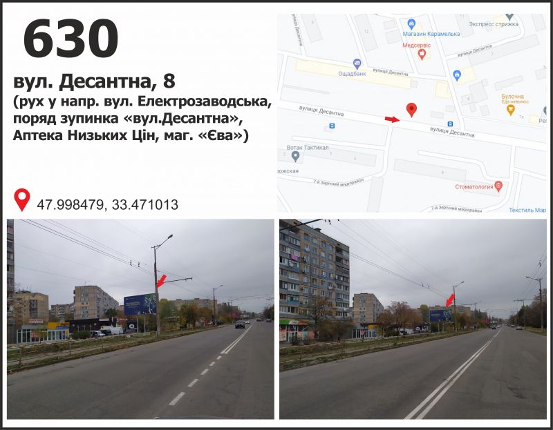 Билборд/Щит по мкр. 7 Заречный , ул. Десантная, 8 (рынок, "АТБ"), дв-е к ул. Электрозаводская, Кривой Рог