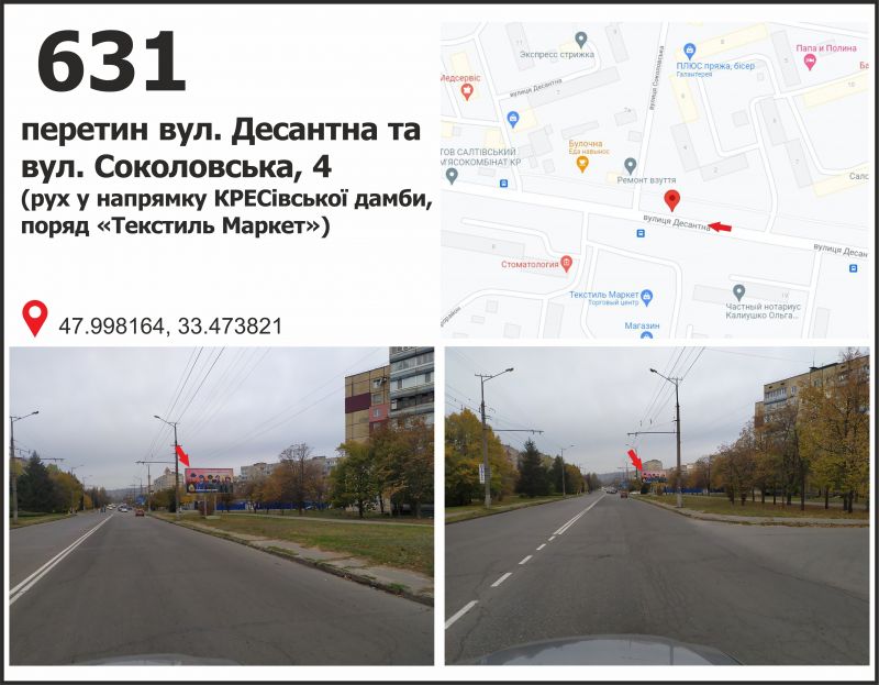 Билборд/Щит по мкр. 4 Зарічний - вул. Панкєєва, 4, рух до вул. Десантної, Кривой Рог