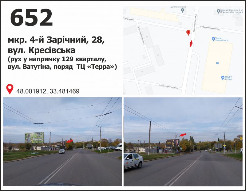 Билборд/Щит по мкр. 5-й Заречный, 27 - ул.Панкеева ( ТК "TERRA", рынок "Габро"), дв-е к 129 кв., Кривой Рог