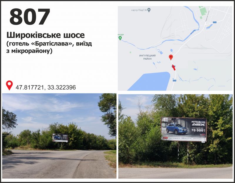 Билборд/Щит по ул. Широковское шоссе , дв-е к мкр. ЮГОК, Кривой Рог