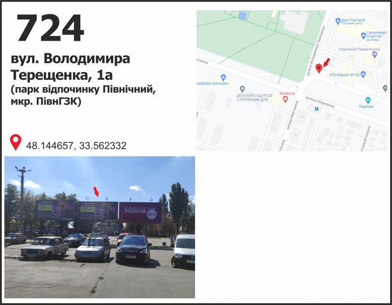 Билборд/Щит по ул. Владимира Терещенко (Федоренко), 1а (ТК "СевГОК", парк отдыха), Кривой Рог