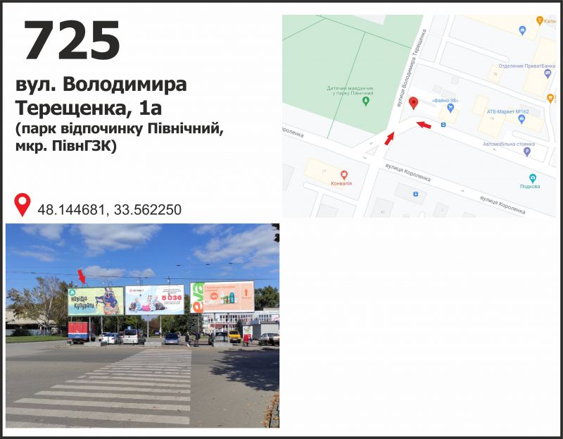 Билборд/Щит по вул. Володимира Терещенко (Федоренко), 1а (ТК "ПівнГЗК", парк овідпочинку), Кривой Рог