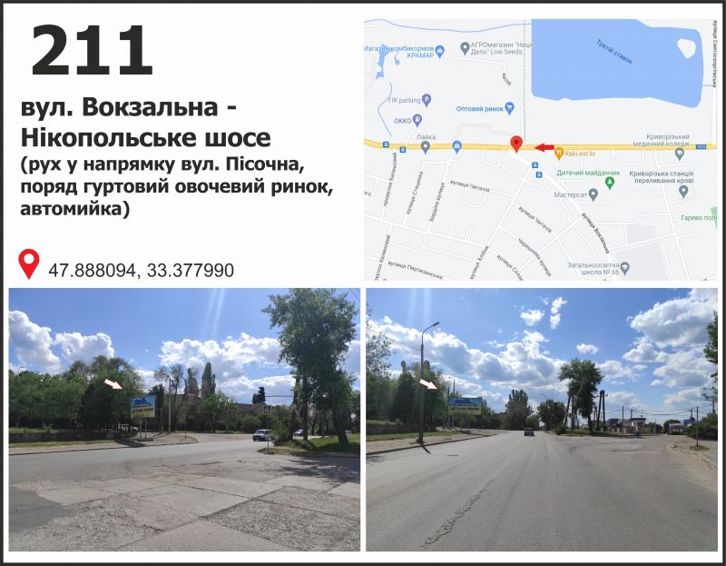 Билборд/Щит по вул. Вокзальна - Нікопольське шосе (рух у напрямку вул. Пісочна, поряд гуртовий овочевий ринок, автомийка), Кривой Рог