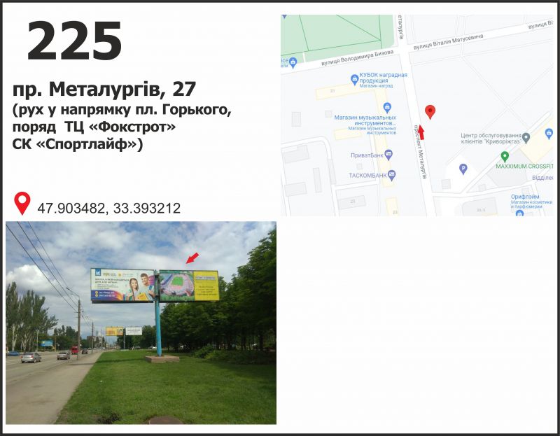 Билборд/Щит по пр. Металургів, 36 ТК "Фокстрот", рух у напрямку пл. Горького, Кривой Рог