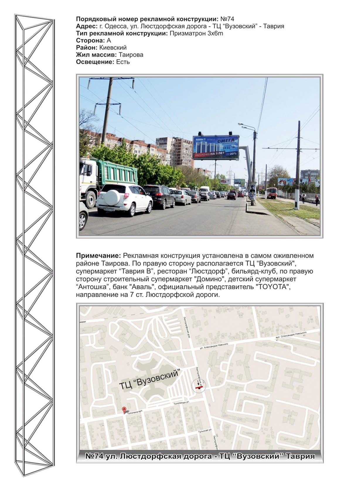 Роллер/Призматрон по №74 ул.Люстдорфская дорога - ТЦ "Вузовский" - "Таврия" из центра ст А, Одесса
