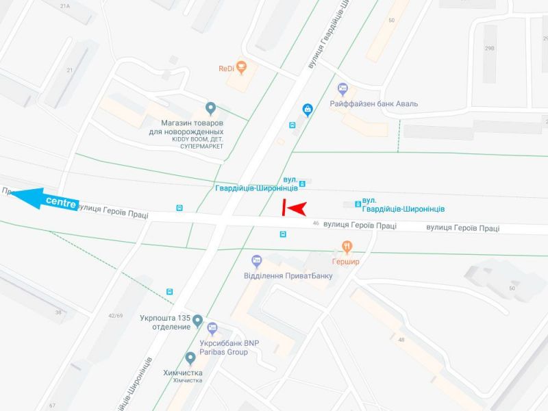 Нескорених (Героїв Праці) вул. - Гвардійців-Широнінців вул., 50/29, в центр