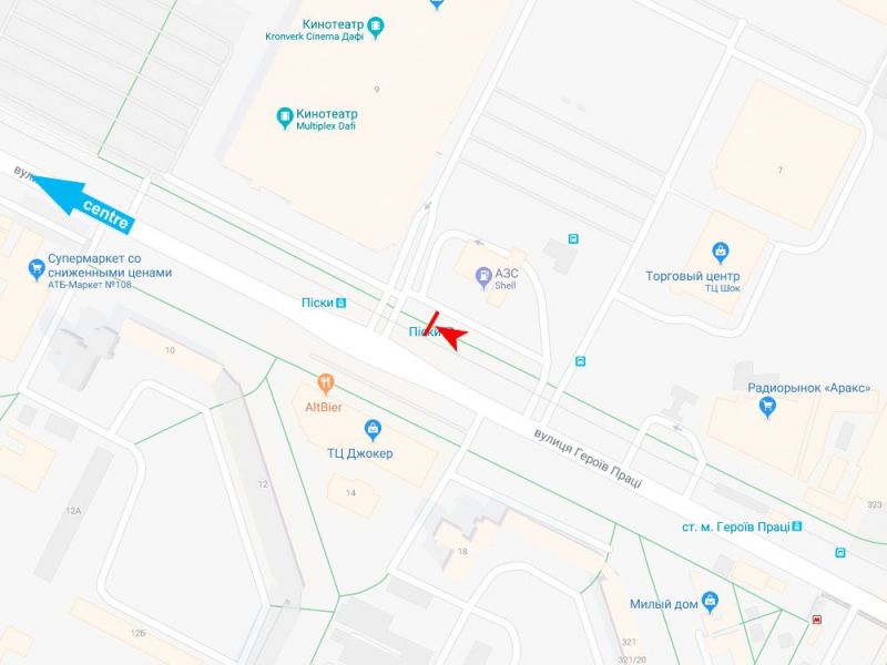 Нескорених (Героїв Праці) вул., 9 (2) (зупинка Піски), в центр