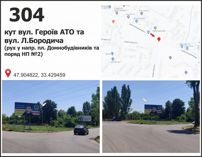 Билборд/Щит по кут вул. Героїв АТО та вул. Л.Бородича (рух у напр. пл. Домнобудівників та поряд НП №2), Кривой Рог