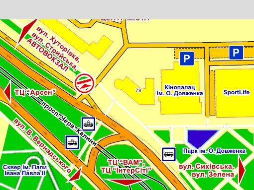 пр. Черв. Калини (навпроти буд. 77, на дод. р/с), розмір 2,3 х 3,2 м, екран