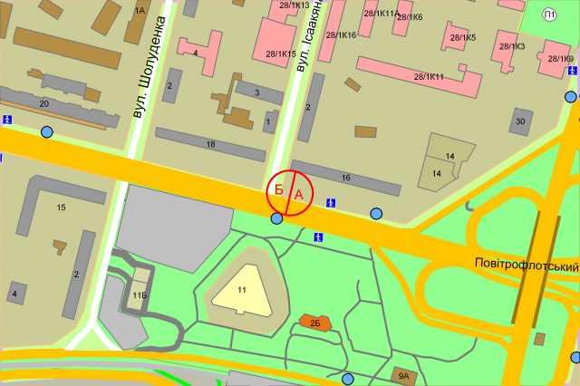 Берестейський пр-кт, 16 (навп. Центрального Палацу РАЦС), рух в напр.ст.м."Політехнічний Інститут"