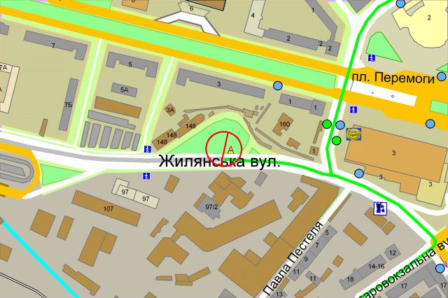 Жилянська, 148 (170 м, від універмагу Україна, зупинка швидкісного трамваю "Галицька площа)