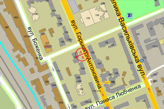 Антоновича вул., 162 (світлофор), 350 м. до ТЦ "Оушен Плаза" та ст. метро "Либідська"