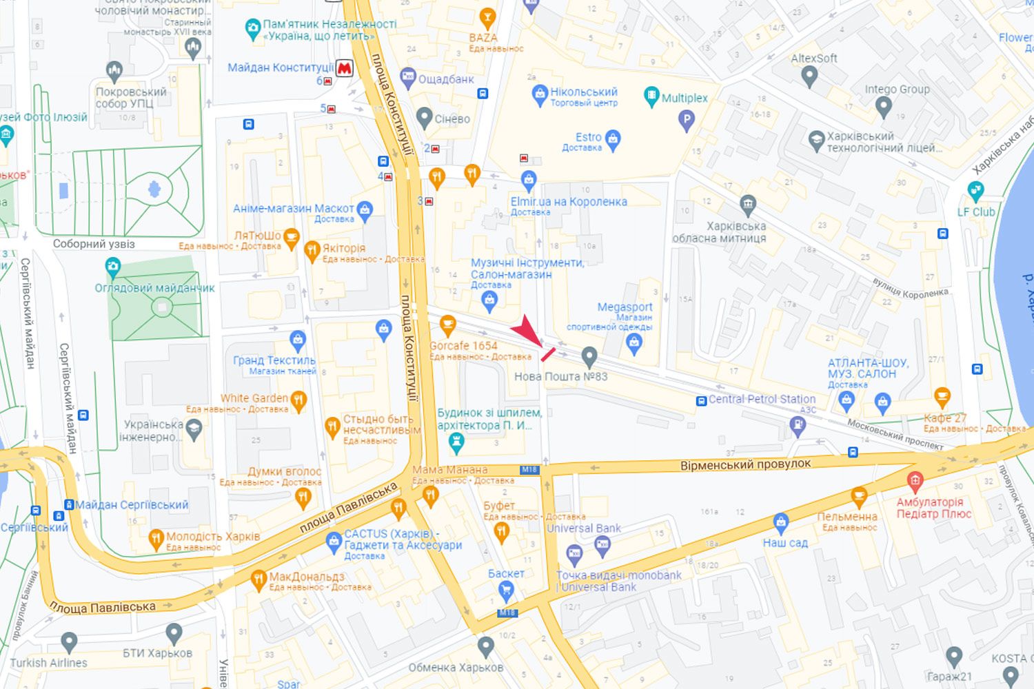 Героїв Харкова пр-т, 10-12 - Короленка пров. 1, з центру (ТРЦ Ніколський) * вертикальний