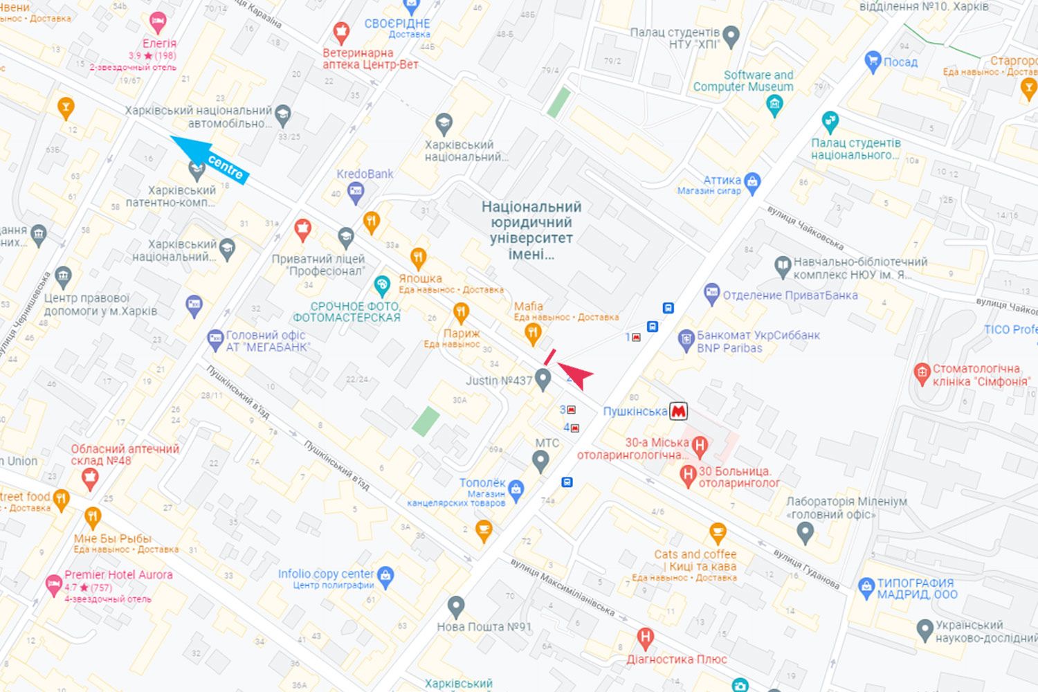 Ярослава Мудрого вул., 37 - Григорія Сковороди (Пушкінська) вул., ст. метро "Ярослава Мудрого" (Пушкінська)" (Ресторан "Мафія", "Париж"), центр