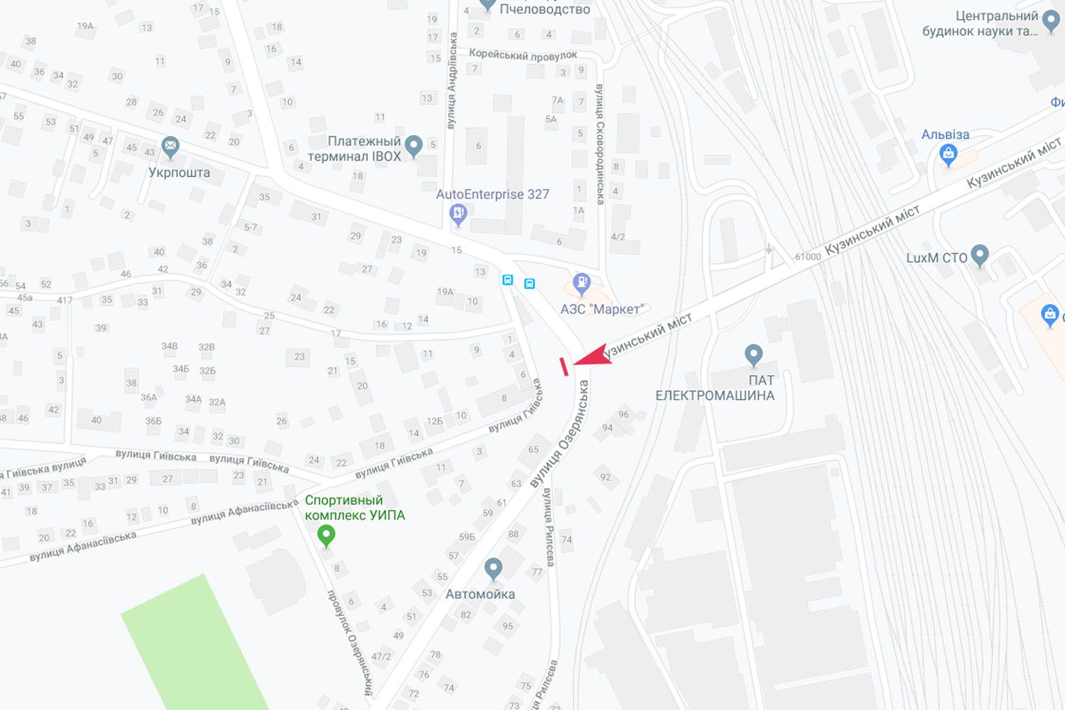 Озерянська вул. - Гиївська вул., 6 (Кузінський путєпровід), з центру