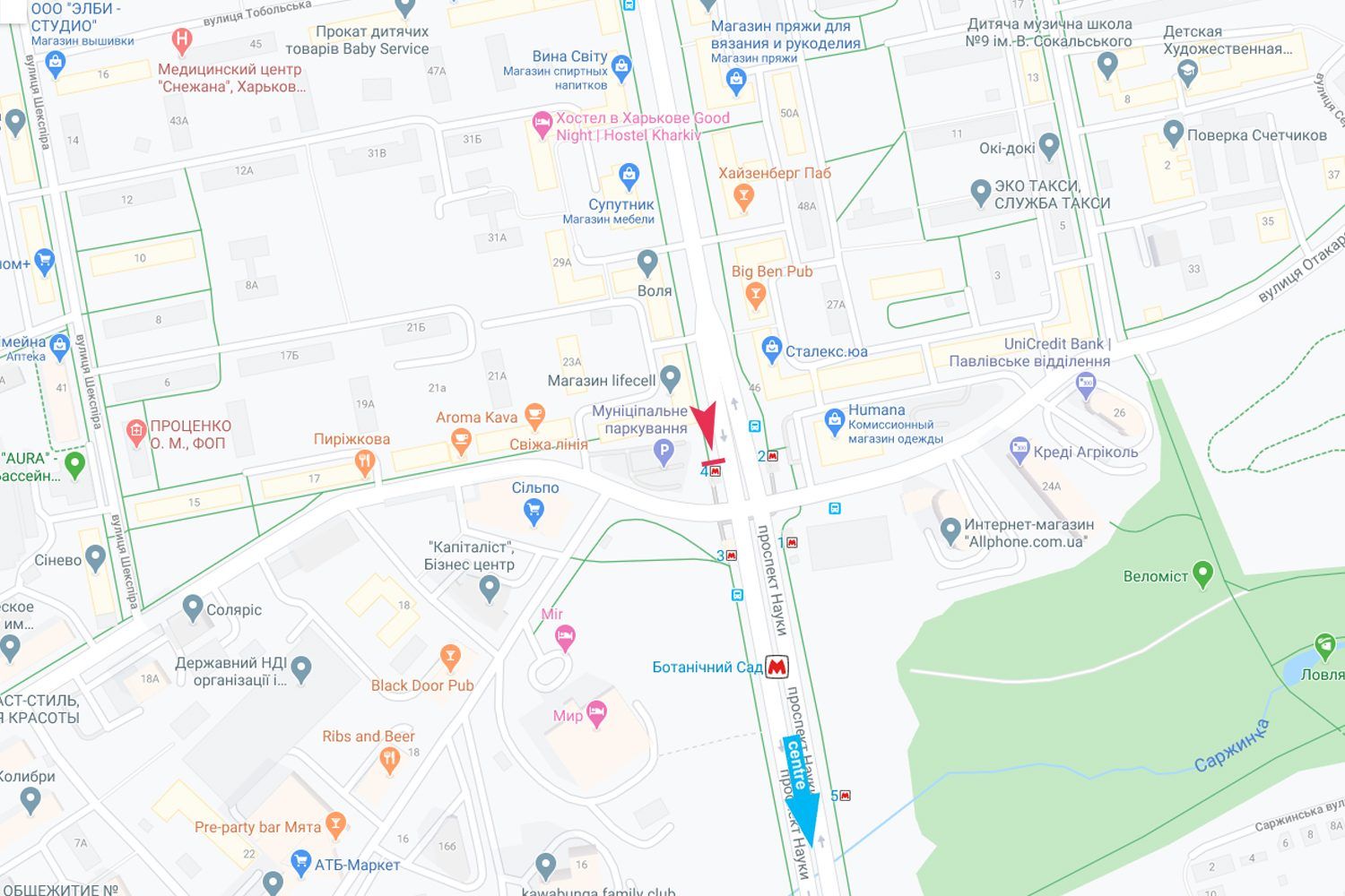 Науки пр-т - Отакара Яроша вул., м. Ботанічний сад, у центр