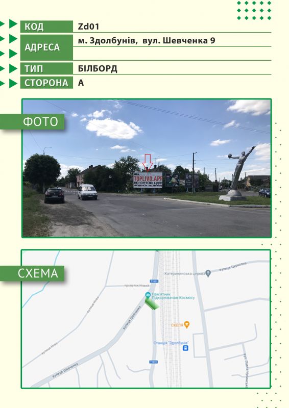 Билборд/Щит по м. Здолбунів, вул. Шевченка, 9 (лівий), Здолбунов