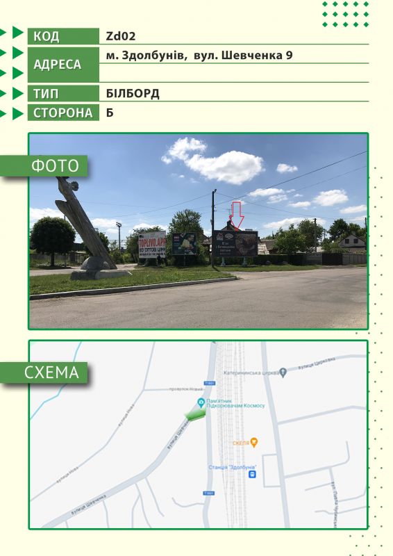 Билборд/Щит по м. Здолбунів, вул. Шевченка, 9 (правий), Здолбунов