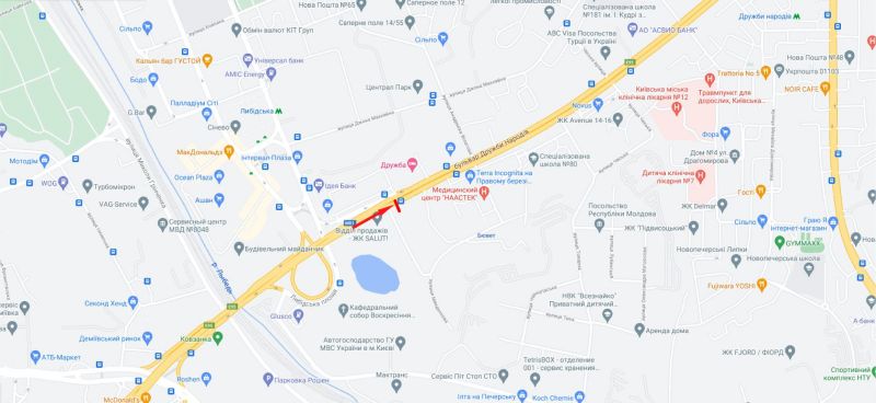 Дружби Народів бульв. 4/6, рух в напрямку від Либідська пл.