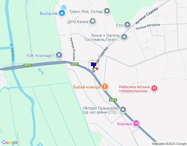 смт. Гостомель, траса М-07 "Київ-Ковель", км 22+850 право, вул. Кулішова, 44 (вул. Садова, 2), перед поворотом на с. Горенка, парковка магазину "Фора"