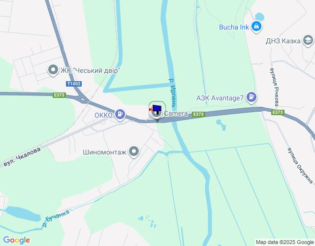м. Ірпінь, траса М-07 "Київ-Ковель", км 23+300 ліво, міст через р. Ірпінка, виїзд з міста, через 275м після АЗС ОККО, за 500м до магазину АТБ, за 550м до магазину ФОРА