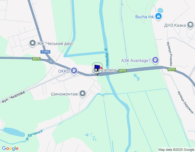 м. Ірпінь, траса М-07 "Київ-Ковель", км 23+300 ліво, міст через р. Ірпінка, в'їзд у місто, за 275м до АЗС ОККО, через 500м після магазину АТБ, через 550м після магазину ФОРА