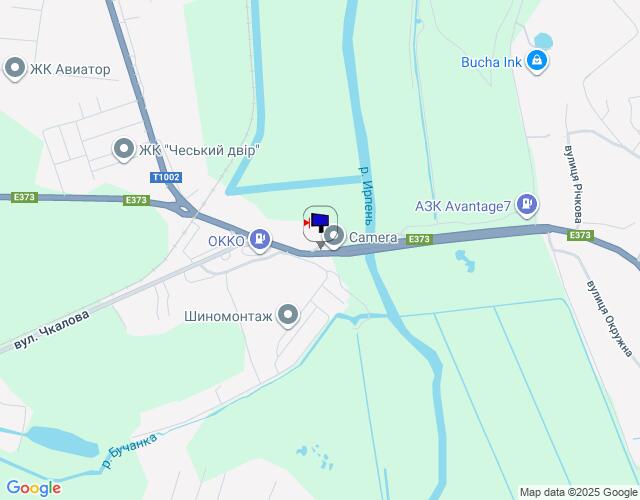 м. Ірпінь, траса М-07 "Київ-Ковель", км 23+370 право, перед мостом через р. Ірпінка, навпроти офісу ЖК "Гостомель Резіденс", через 180м після АЗС ОККО, за 570м до магазину АТБ, за 620м до магазину ФОРА