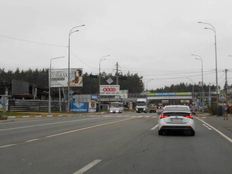 Билборд/Щит по м. Ірпінь-м. Гостомель, вул. Свято- Покровська (навпроти №20-А) - вул. Шевченка, траса М-07, км 23+650 ліво, перед Гостомельським кільцем, біля Сіті Маркету, зупинка, Гостомель
