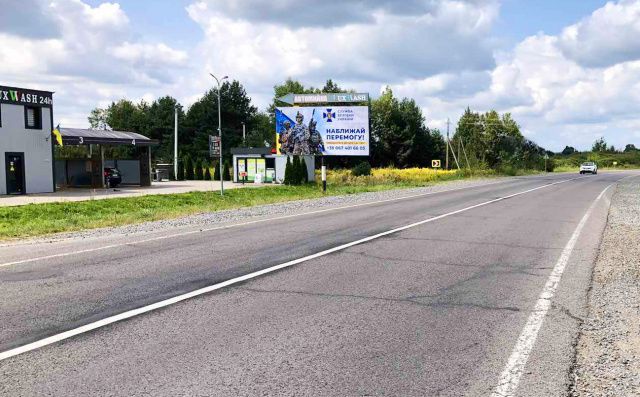 Билборд/Щит по на кордон Краківець - Корчова, на м. Яворів, обмеження швидкості, висока конструкція, мийка Lux Wash, далі АЗК Львів Петроль, АЗК Барс, траса Львів - Краковець (М-10), Трассы