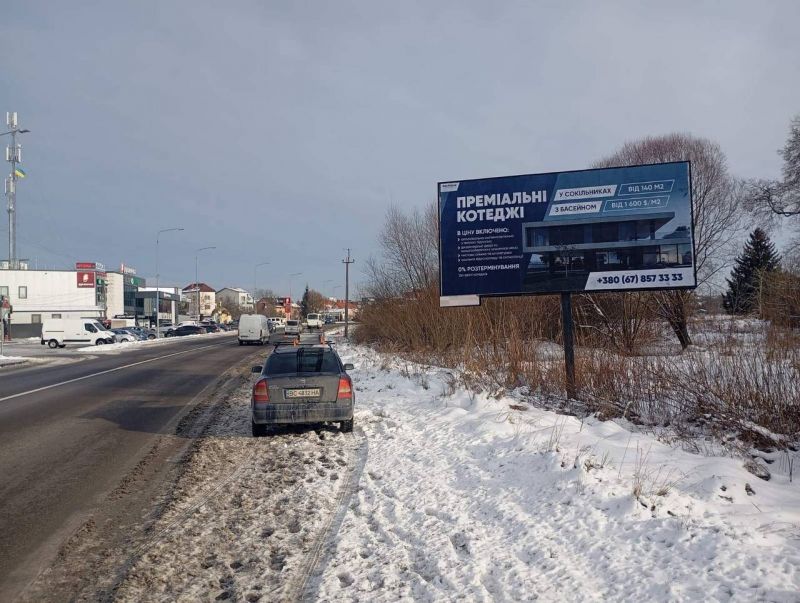 Билборд/Щит по Львів-Сокільники, дорога Львів-Пустомити (ліворуч), перед мостом, біля Silver Park. (3х6, А), Трассы