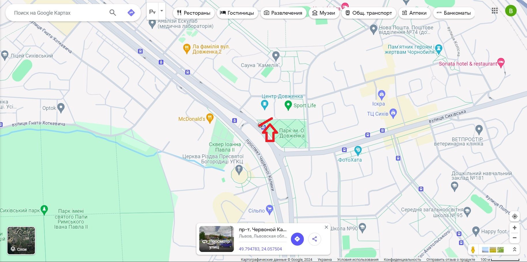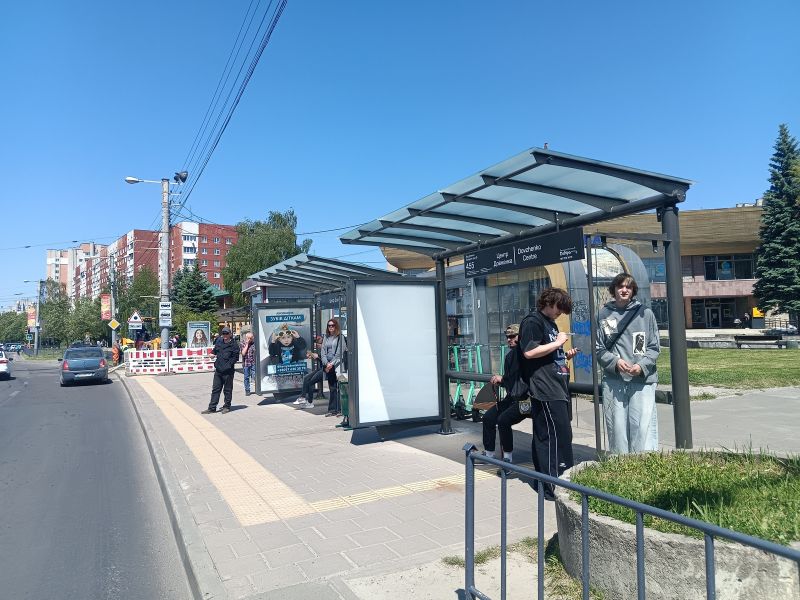 Реклама на остановках по Проспект Червоної Калини, 81 (зупинка "Центр Довженка") навпр. Кінопалацу ім. О. Довженка, Львов