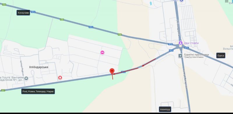 Одеса - Рені транспорт прямує в м. Маяки (1 км від 2х стовпів)