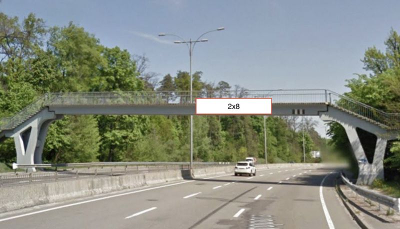 Реклама на мостах по Нова велика кільцева, пішохідний міст на ПК 59+50, автомобільна дорога Т1027, напрямок до площі Тараса Шевченка, Киев